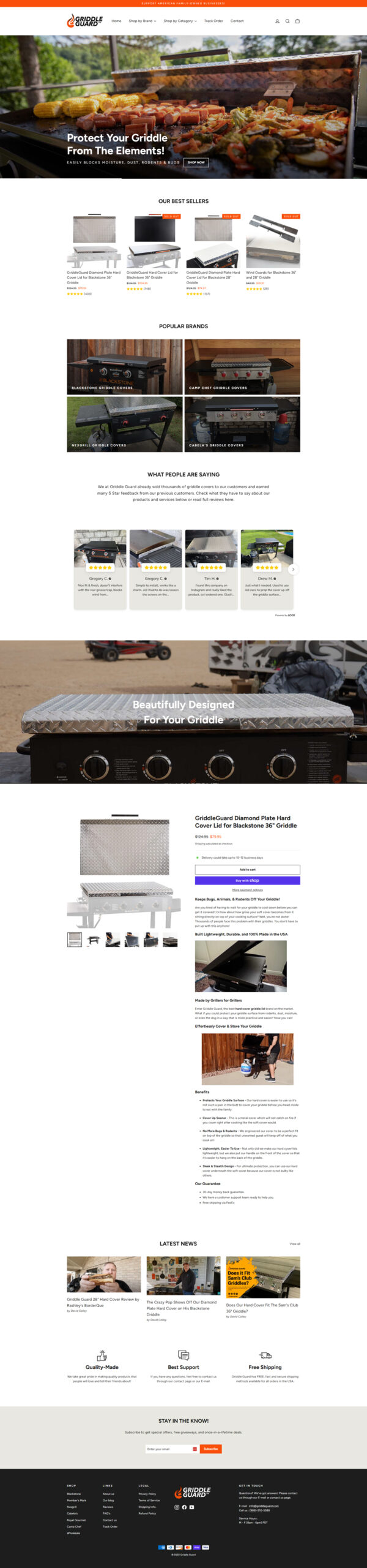Griddle Guard, a leading USA griddle lid brand, needed a complete website overhaul to replace their outdated store. I redesigned their Shopify site from scratch using modern design standards, smooth animations, and a mobile-optimized layout. Focused on improving usability, speed, and product presentation across all devices. The result is a visually stunning, high-performing Shopify store that enhances user experience, drives higher engagement, and supports their continued growth.
